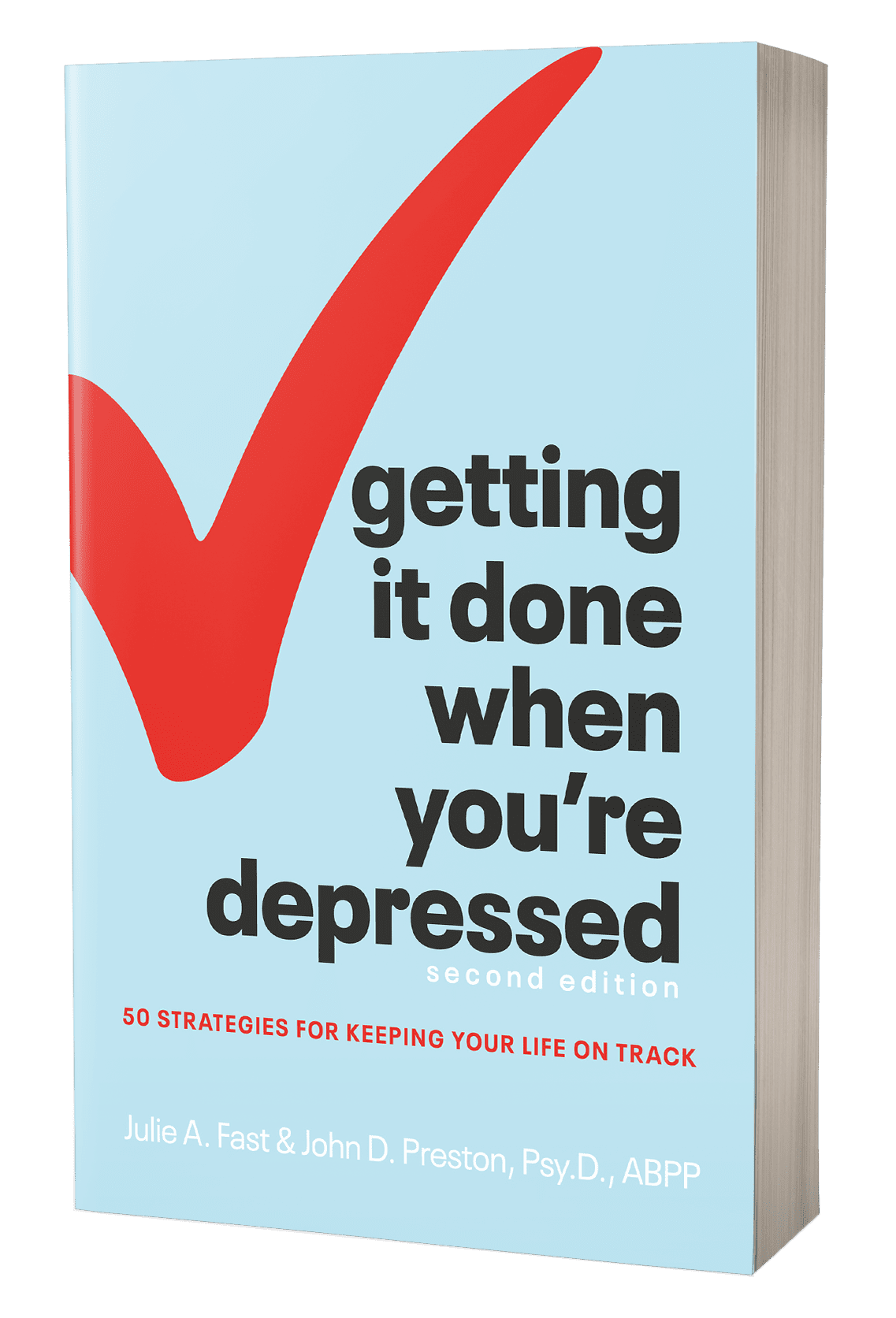 It’s heartbreaking to see someone struggle with depression. It can also be frustrating if the depression leads to irritation and helplessness. Getting it Done When You’re Depressed was the first book to offer strategies that help a person get on with life while the depression is still around. So many books talk about ending depression, and this is great, but it’s not always reality. Sometimes a person has to learn to live with the depression while they are getting treatment for the symptoms. There are 50 strategies in this book that you can learn and then use with a loved one. There is a section in each strategy for those who want to help and Julie clearly shares how uses these strategies to work and get on with life despite her chronic depression, anxiety and focus concerns. The book is also an excellent resource for anxiety and ADD symptom management. One way to use the book is to choose a strategy you feel would help a loved one and then read the strategy out loud. If a loved one is functional enough to focus on self care, you can hand them the book and say, “Does this women know what she’s talking about!?”